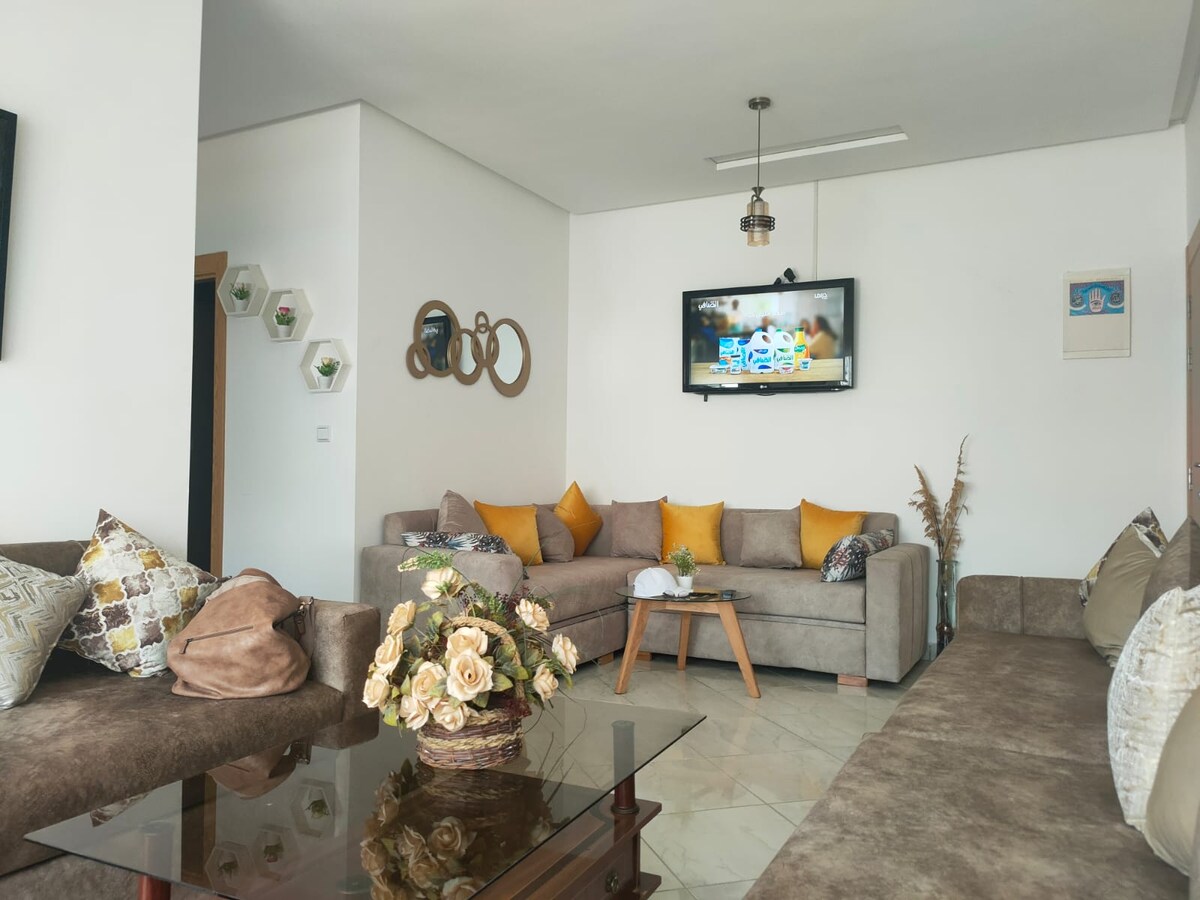 Skaists luksusa dzīvoklis, kas ir ideāli piemērots pāriem vai nelielām ģimenēm, atrodas tikai 5 minūšu attālumā no pludmales un netālu no Marjane un visām ērtībām. Šis greznais dzīvoklis atrodas diennakts apsargājamā rezidencē ar diviem pieejamiem peldbaseiniem, vienu pieaugušajiem un vienu bērniem, kā arī zaļo zonu un bezmaksas autostāvvietu. Plaša istaba, ļoti ērts dīvāns, ļoti labi aprīkota virtuve, skaista terase. Gaisa kondicionētājs visās telpās.