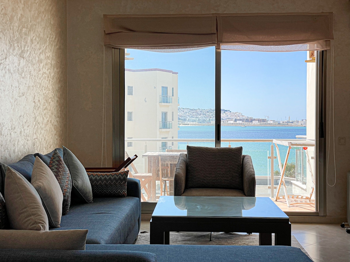 Pamostieties ar satriecošu skatu uz jūru šajā modernajā 2 guļamistabu dzīvoklī, kas atrodas tikai dažu soļu attālumā no pludmales ar tiešu piekļuvi smiltīm. Lieliski novietots pašā Tanžeras sirdī, tas apvieno atpūtu un ērtu pārvietošanos pa Corniche, baudiet maltītes populārākajos restorānos, iepērcieties City Center Mall tirdzniecības centrā vai sasniedziet TGV dzelzceļa staciju dažu minūšu laikā. Ar trim privātiem balkoniem ar skatu uz ūdeni tas ir ideāli piemērots ģimenēm, draugiem vai pāriem, kas meklē Tanžeras dinamisko dzīvesveidu tieši krastmalā.