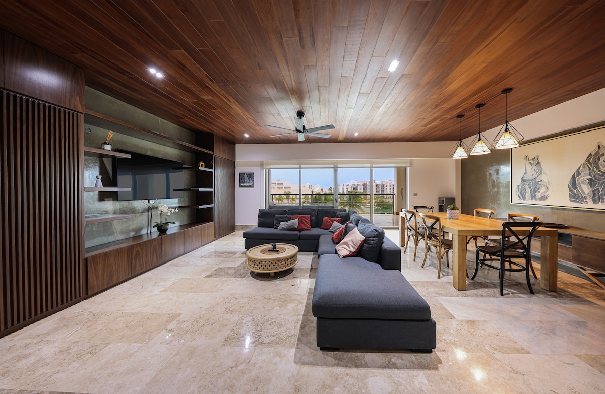 Mūsu dzīvoklis atrodas otrajā stāvā, un tajā ir 5 guļamistabas, kā arī skats uz jahtu piestātni. Dzīvojamo kompleksu ar tiešu piekļuvi garai, balto smilšu pludmalei ir raksturīga tā privileģētā atrašanās vieta, greznas papildērtības un daudzveidīgi piedāvājumi. Mēs atrodamies 10 minūšu brauciena attālumā no Playa Mujeres golfa laukuma. Mēs piedāvājam lieliskus kontaktus automašīnu īrei, ekskursijām, transportam un personalizētai gastronomiskai pieredzei.