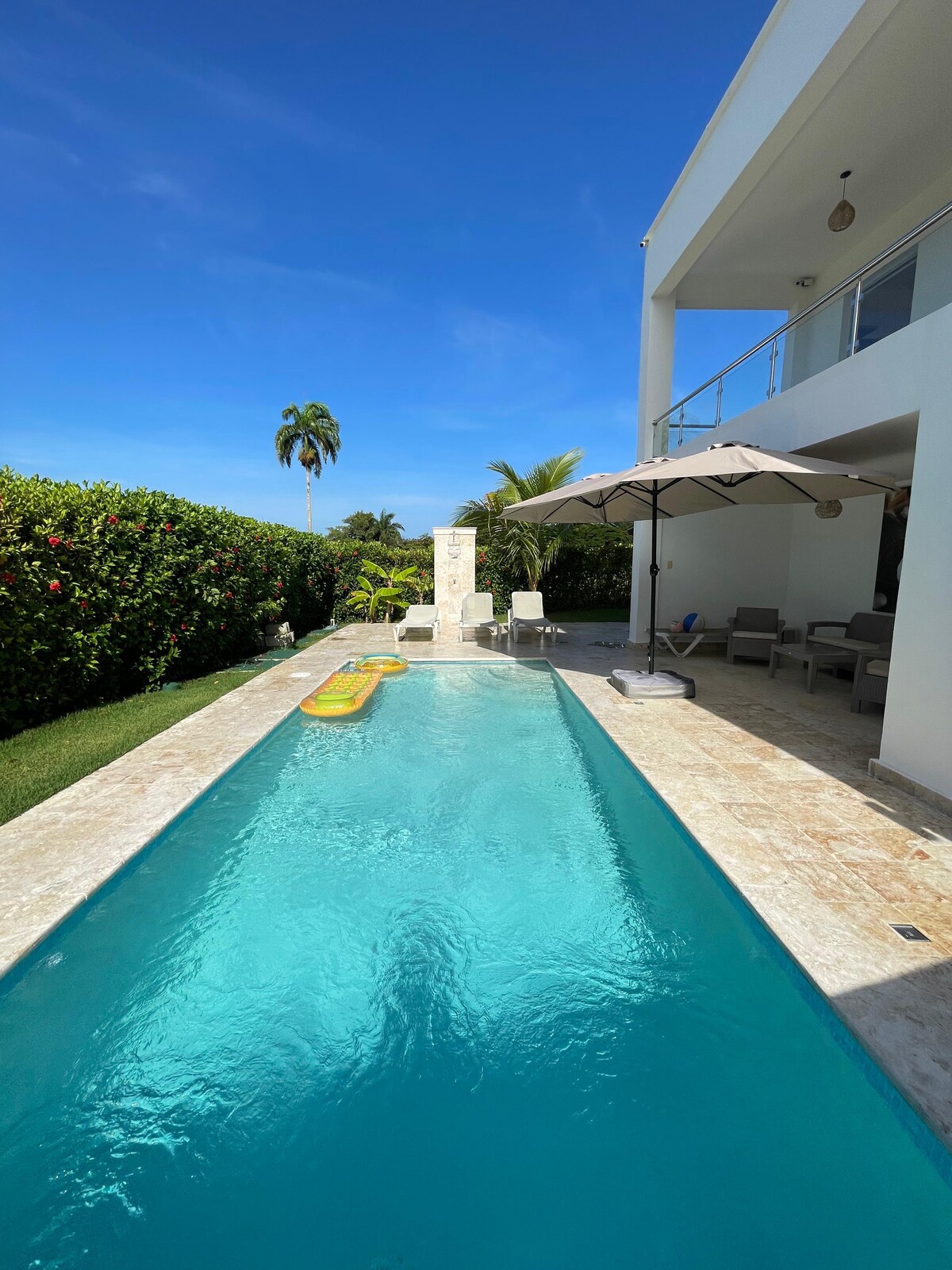Relax in style at Roga Private Villa—steps from world-renowned Encuentro Beach in Cabarete! 4 bedrooms (King, King (or Double Twin upon request), Queen and a poolside casita with a King bed), each with private bath. Spacious living and dining areas, fast WiFi, smart TVs, and a fully-equipped kitchen. Outdoors: lush tropical yard, large private Pool & SPA, BBQ/bar and NEW wellness retreat amenities- private SAUNA,ICE BATH. Truly the Perfect family & Friends getaway, Pets welcome (fee)…see more