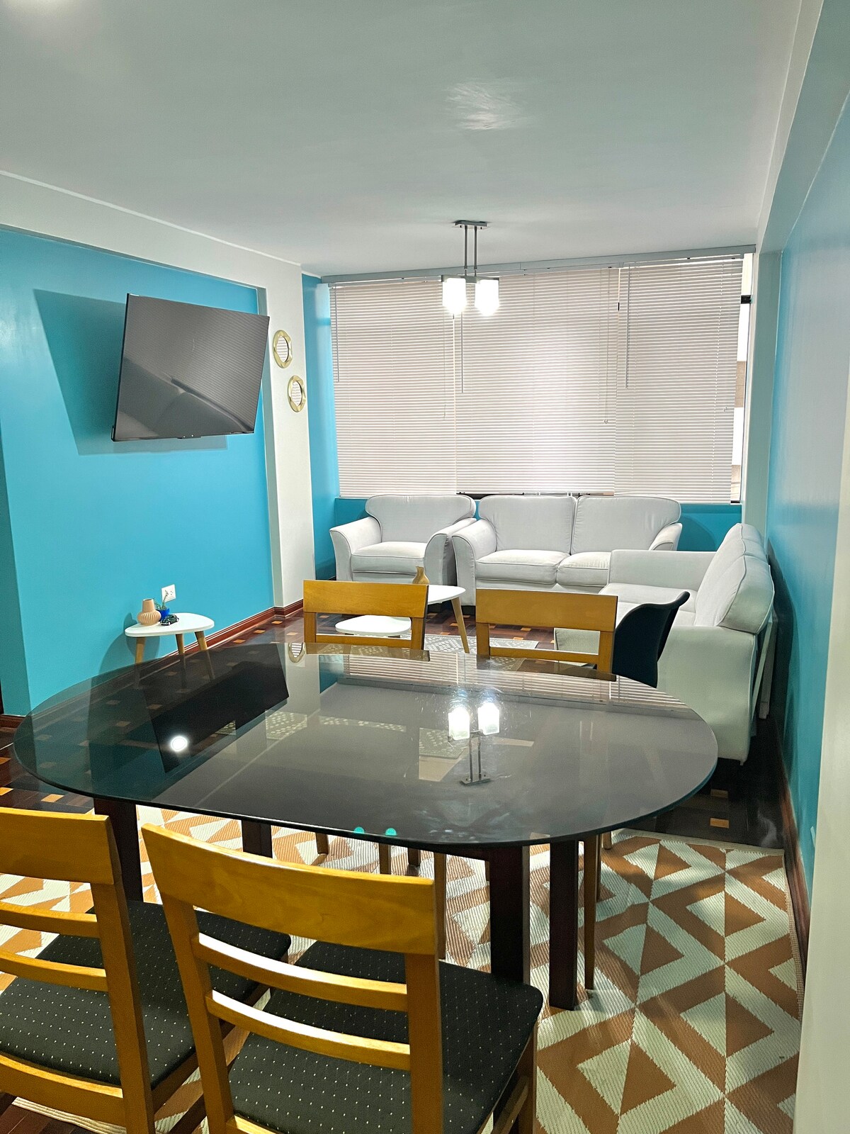 Complete, modern apt. Only for 2 guests (no kids). Additional people/visit are NOT ALLOWED. You can ask for 1 parking lot (for the WHOLE stay) + aditional $. 1 Big bed, SMART TV with cable, therma (hot water), laundry drier machine, little kitchen on table, microwave, fridge. Only for travelers (not ppl who lives here) WITH PREVIOUS GOOD EVALUATIONS FROM OTHER HOSTS in AIRBNB. Close to Miraflores and Barranco (15 min by car and bus aprox). Bus stop at 1 block. Apps' taxis arrive immediately.