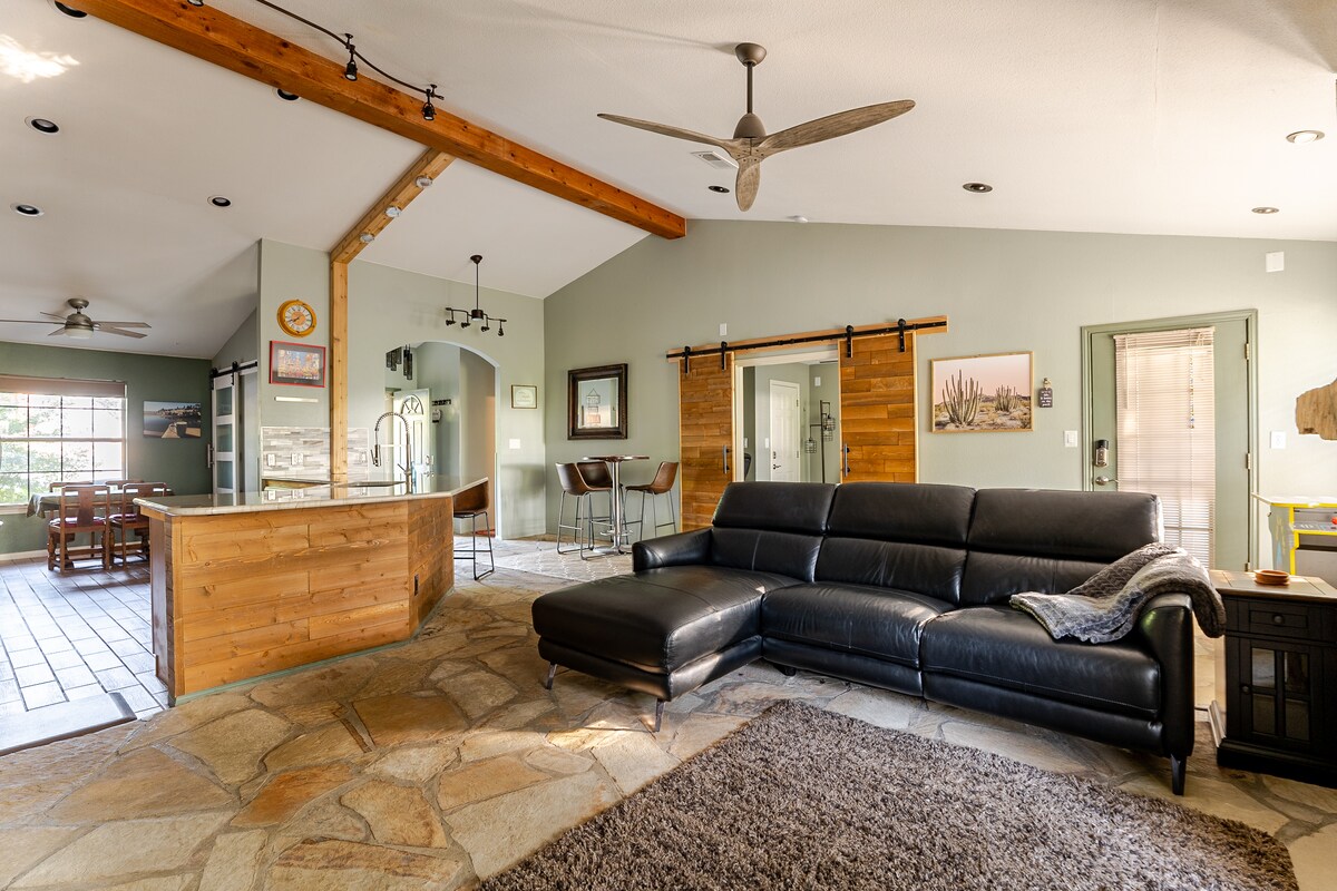 Presenting The Gallery. Surround yourself with curated artwork, vintage objects and dreamy furnishings. The award-winning Gallery was recognized by internationally known AFAR Media as one of the top Airbnb’s in the World. And featured in the 2023 Austin modern home tour. Take a dip in a waterfall salt water pool. Perfect for cooling off in summer and heated during the winter! Just four blocks to vibrant South Congress. And No Cleaning Fees! No Chores! Just like it should be.