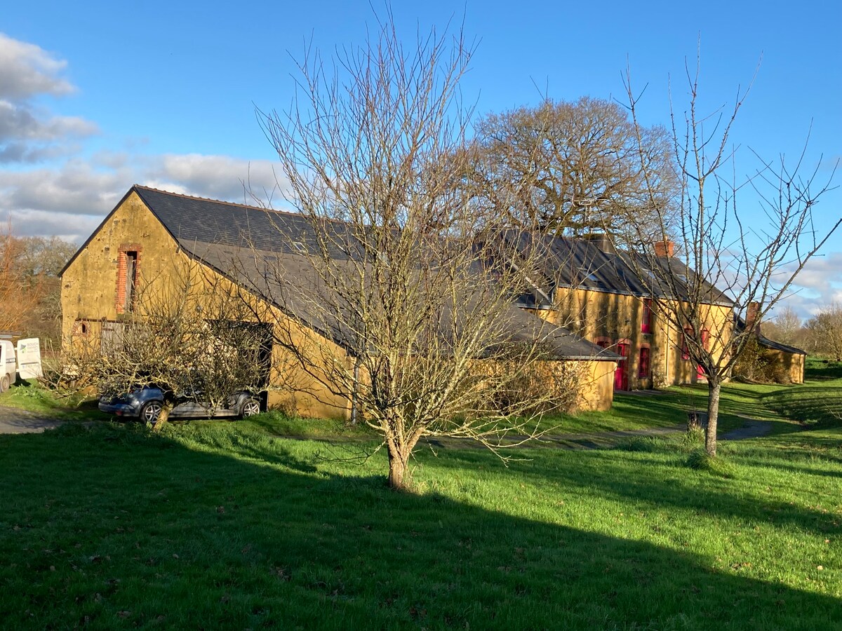 Atrodas mierīgā ciematā, kas izgatavots no akmeņiem, tālu no aizņemtiem ceļiem, pie Bretaņas "Les prés de la Janais" vārtiem, ir plašs īpašums 20 000 m2 platībā, tostarp liels dārzs, mārciņa, ābeļdārzs, pamežs, ganības un rotaļu grupa bērniem (batuts, ieroči, torti). Neliels strauts un koplietošanas ceļš norobežo mūsu īpašumu. Teritoriju ieskauj organiskas ganības, un bioloģiskais aparāts ir ļoti rīts.