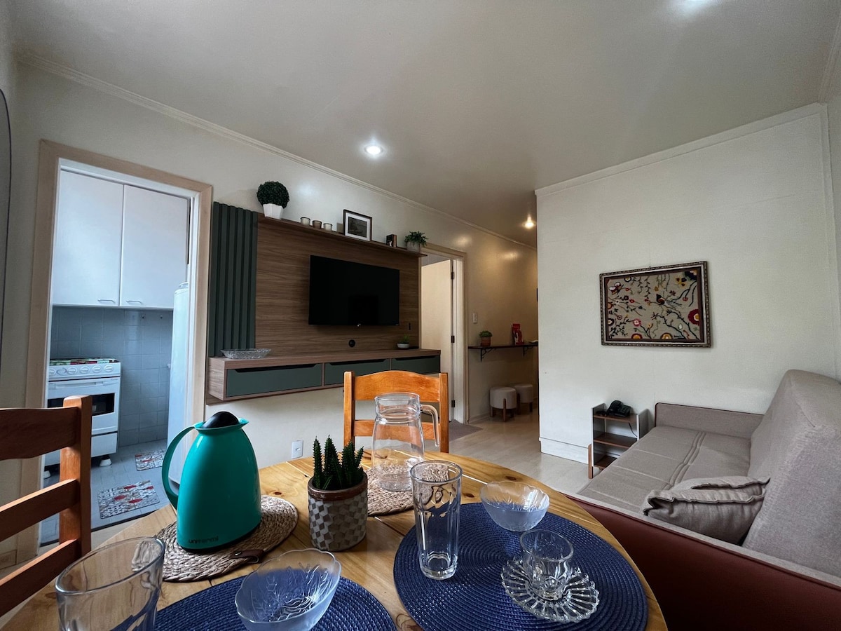 Apartamento aconchegante e charmoso na Rua Assis Figueiredo, bem no coração de Poços de Caldas. Localização privilegiada, com fácil acesso a supermercados, farmácias, padarias. lojas, restaurantes e os principais pontos turísticos da cidade. Desfrute de um apartamento novo, climatizado e completo para que sua estadia seja perfeita. O ambiente é acolhedor e com uma linda vista.