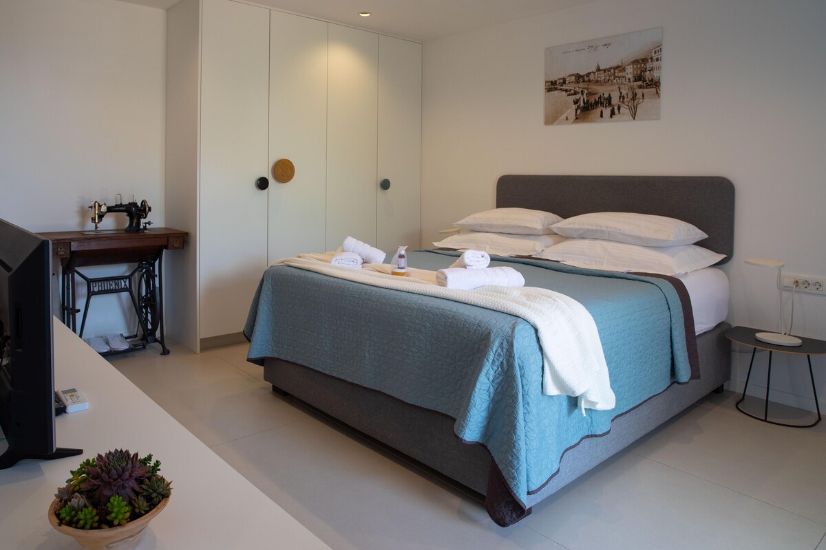 Luksusa dzīvoklis ar satriecošu skatu uz jūru Šis skaistais dzīvoklis atrodas mierīgā pilsētas daļā, tikai 1500 m attālumā no vecā centra un aptuveni 350 m attālumā no tuvākās pludmales. Tā piedāvā 79 m² dzīvojamās telpas un divas plašas terases, katra 25 m². Priekšējā terase lepojas ar skaistu skatu uz jūru, savukārt segtajā sānu terasē ir arī relaksējoša burbuļvanna un ēdamistaba. Abas terases ir aprīkotas ar galdu un krēsliem, kas ir ideāli piemērotas āra maltītēm un atpūtai.