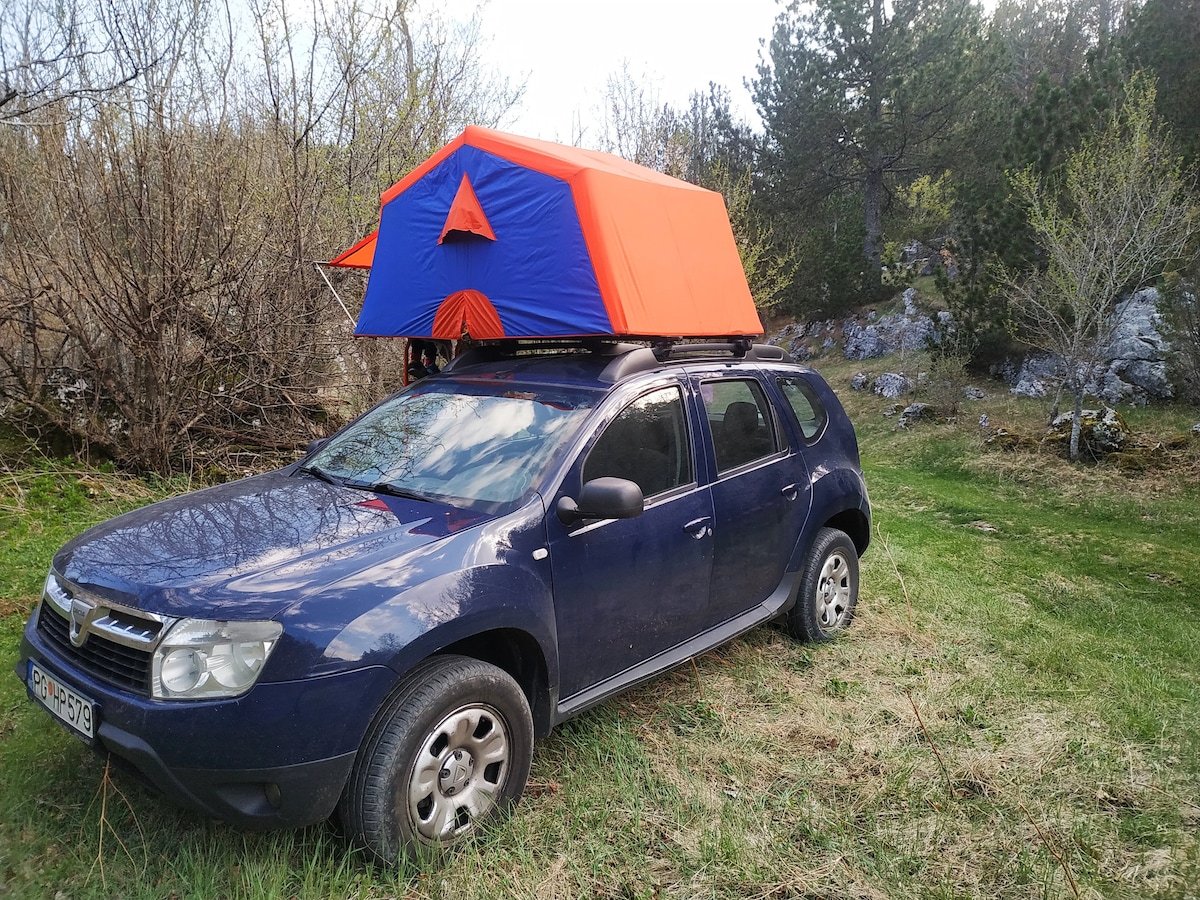 Nometne Melnkalnē - 4x4 jumta telts kempera īre