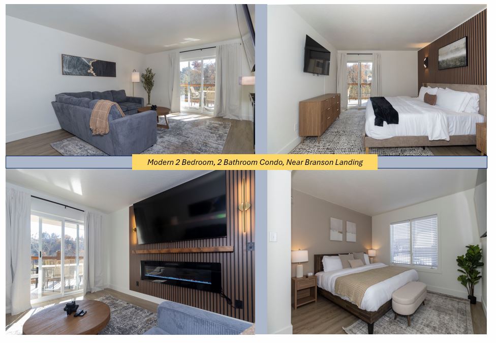Laipni lūdzam savās mājās ārpus mājām skaistajā Brensonā, Misūri! Mums ļoti patīk šeit pavadīt laiku un iekārtot savu dzīvokli tā, lai justos silti, viesmīlīgi un nešķiet kā tipisks viesnīcas numurs. Šis mājoklis, kas tikko pārveidots no augšas uz leju, tika veidots, domājot par komfortu, stilu un relaksāciju. Mūsu dzīvoklis atrodas pieprasītajā Pointe Royale kopienā, tikai īsas pastaigas attālumā no visām kūrorta papildērtībām un tikai dažu minūšu attālumā no slavenās Brensonas Stripas, Galda klinšu ezera, vakariņām un atrakcijām.