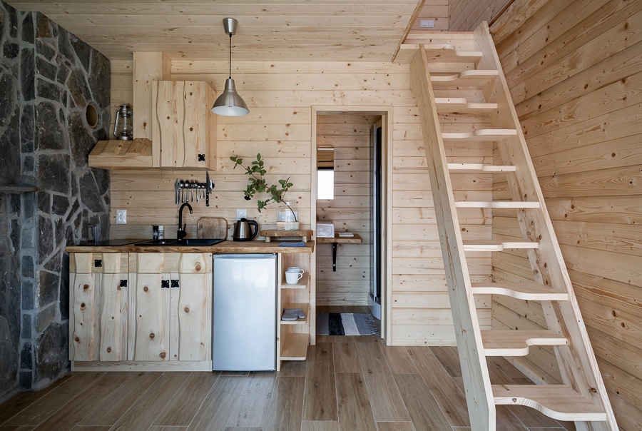 Kalnu kalnu namiņš ar burbuļvannu un saunu