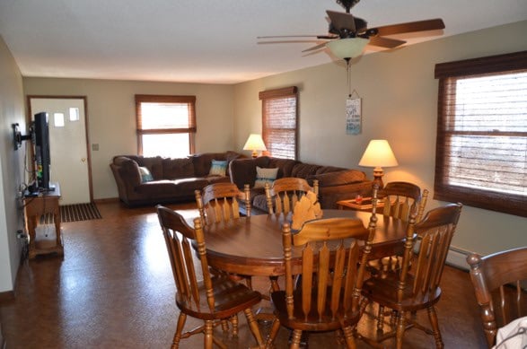 Istaba visai ģimenei ar trim lielām guļamistabām ar divguļamajām gultām un papildu divguļamajām gultām. Ērtā dzīvojamā istabā ir gāzes kamīns un pievienota spēļu istaba ar kāršu galdu un gaisa hokeja galdu. Ārā ir privāta pagalma terase, ugunskura vieta, dīķis un daudz savvaļas dzīvnieku... un mazāk nekā piecu minūšu attālumā no Hurona ezera pludmalēm un laivu nolaišanas vietām. Nav garantēta apsildāma iežogota baseina piemiņas dienas izmantošana līdz darba dienai. Piemērots mīļdzīvniekiem ar papildu samaksu pēc apstiprināšanas.