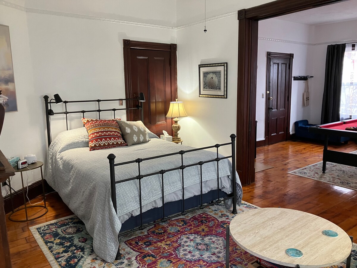 Indulge in the charm of our delightful Kingston, NY apartment! Relax in two luxurious full beds amidst stunning trails, exquisite dining, and charming boutiques. Immerse yourself in vibrant Midtown, steps from the historic Stockade District. Rejuvenate, cook in our well-equipped kitchen, or dine on the private patio. Book now for an unforgettable stay! FUN FACT: Discover the fascinating historical gem of America's oldest corner, just a leisurely 10-15 minute stroll away.