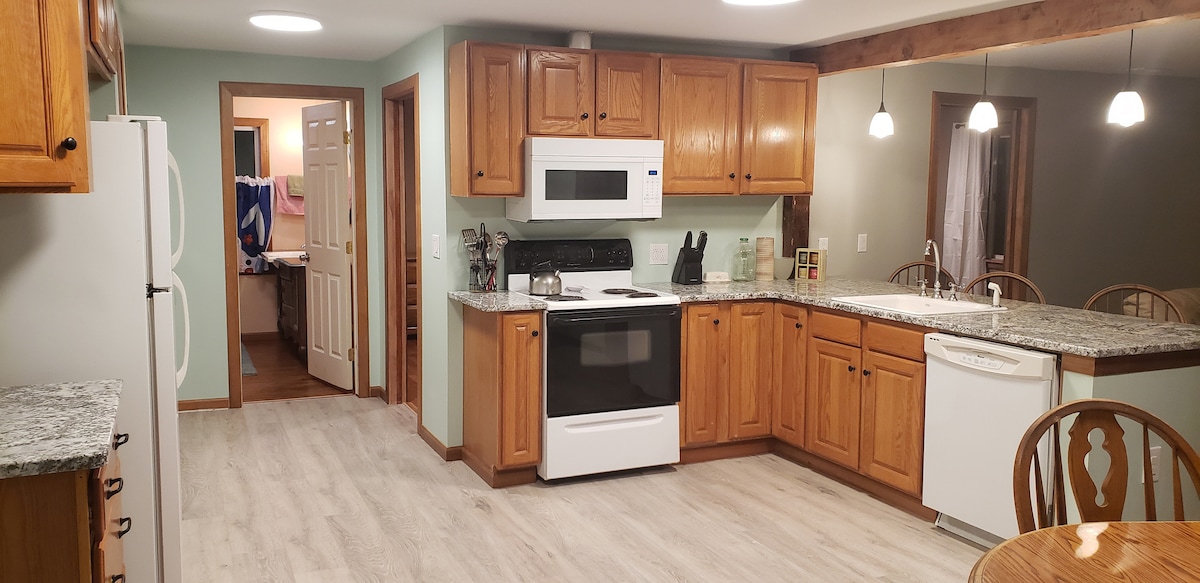 Mājīgi baudiet IEKĻAUJOŠU kafiju + brokastis no R44 kafijas veikala katru ceļojuma dienu! Izbaudiet komfortu, ko sniedz šis nesen atjaunotais 2BR (*Neobligāts 3. BR viesistabā ar mūsu eleganto Mērfija gultu!) 1.5Vannas dzīvoklis burvīgajā Mantujas pilsētā, Ohaio. ✔ 2 ērti BR (*pēc izvēles 3. BR viesistabā ar mūsu Mērfija gultu!) ✔ Open Design Living ✔ Pilnībā aprīkota virtuve, ✔ bezmaksas brokastis un kafija ✔ Neliels lievenis ✔ ātrgaitas Wi-Fi ✔ Viedtelevīzija ✔ Veļas mazgājamā mašīna/žāvētājs ✔ Bezmaksas autostāvvieta + elektromobiļa uzlāde (220 kontaktligzda)