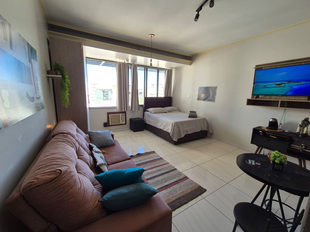 Dzīvoklis ar 1 guļamistabu, dzīvojamo istabu, aprīkotu amerikāņu virtuvi, apkalpošanas zonu, lielisku atrašanās vietu tiem, kuri ierodas darba darīšanās vai atpūtai, saulains, vēdināms, ar dalītu gaisa kondicionieri, griestu ventilatoru, TV, Wi-Fi, Net flix, pimple gludekli, fēnu, 6 stāviem, 2 liftiem un konsjeržu. Dariet visu ar kājām, gvajas robeža, gāzes metrs, vēstniecība, pils , {{, muzeji, militārā teritorija, publiskais tirgus, komercija, kulinārija, netālu no stacijas. Casa, UFRGS, TJ, Jurisdikcija.