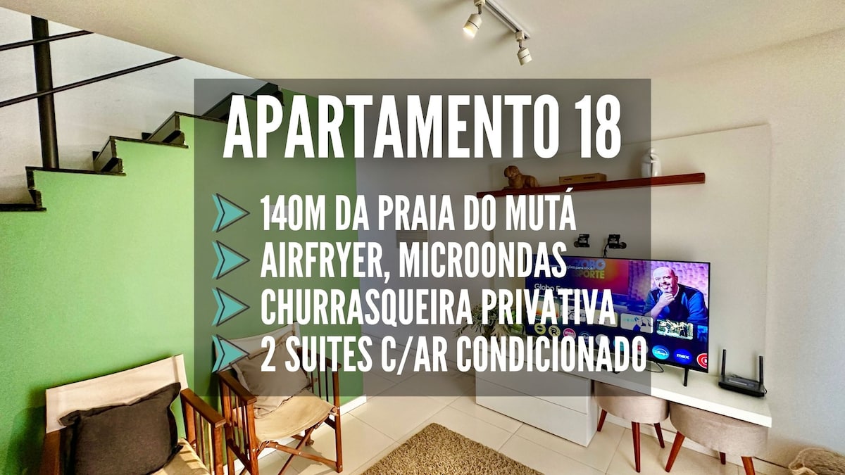APO18 PRAIA MUTÁ a 140m, 2 suítes c/ar
