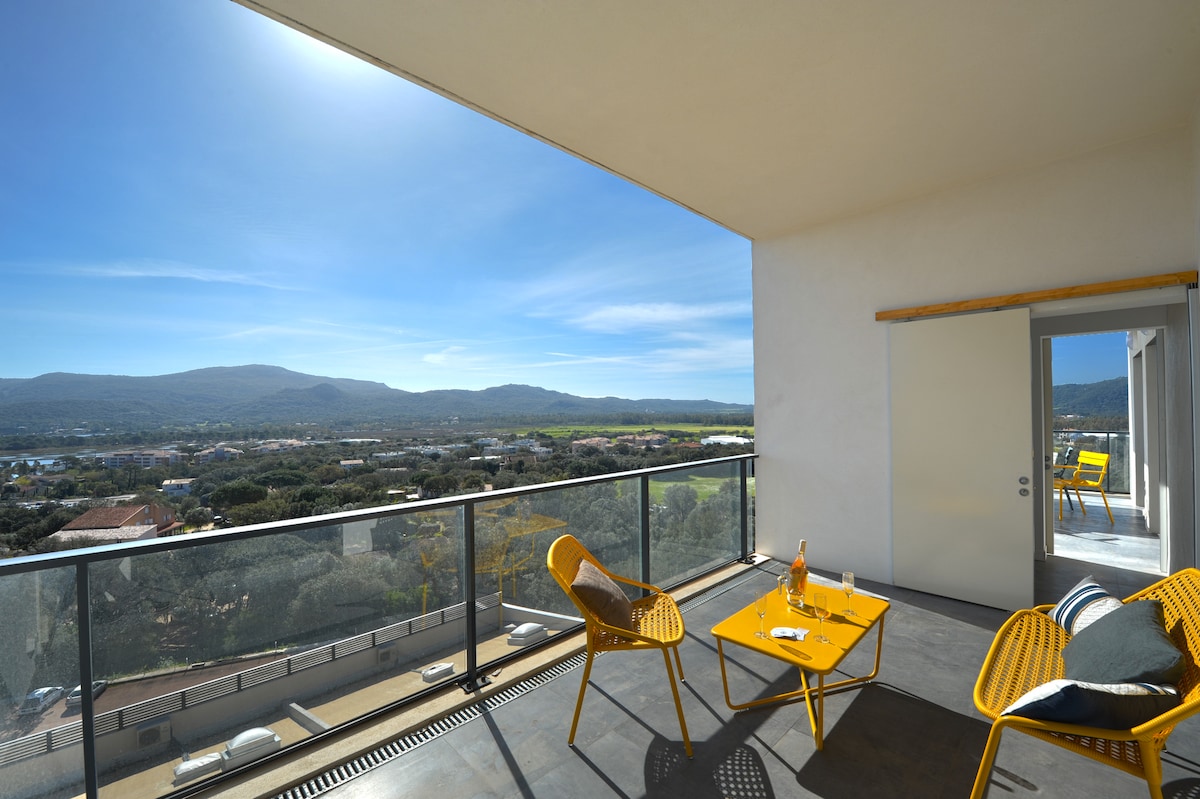 Liels jauns dzīvoklis 100 m2 platībā ar 3 guļamistabām un 2 terasēm. Skaists panorāmas skats uz Porto-Vecchio līci un senajiem sāls purviem Skaidra un plaša, tā atrodas augsta stāva luksusa vārtu rezidencē (baseins, lifts, garāža) Ideālā vietā, kas atrodas Porto-Vecchio starp vecpilsētu un jahtu ostu (10 minūšu gājiena attālumā), dažu kilometru attālumā no skaistākajām Korsikas dienvidu pludmalēm (Palombaggia..) Nomas cenā iekļauta gultasveļa.
