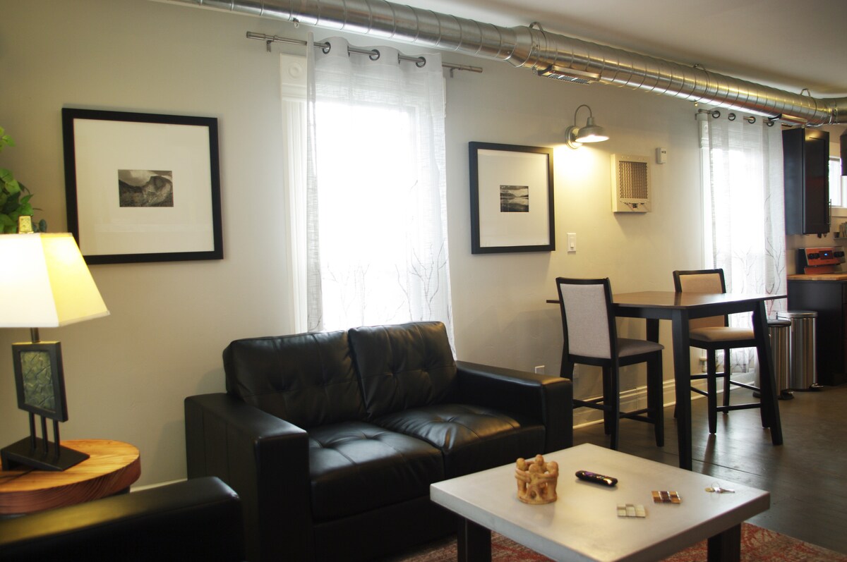 Privāta ieeja, savrupa no galvenās mājas. Ērts, studijas tipa. Atvērtā tipa dzīvoklī nav virtuves, nav veļas mazgātavas. Privāta vannasistaba. Guļamvietas ir viena atsevišķa divguļamā gulta, bet tā nav privāta no viesistabas zonas un dīvāngultas. Dīvāna spilveni noņem, lai kļūtu par "dvīņu" izmēra gultu Piemērots ne vairāk kā 3 pieaugušajiem vai 2 pieaugušajiem 2 bērniem. Nav piemērots maziem bērniem.