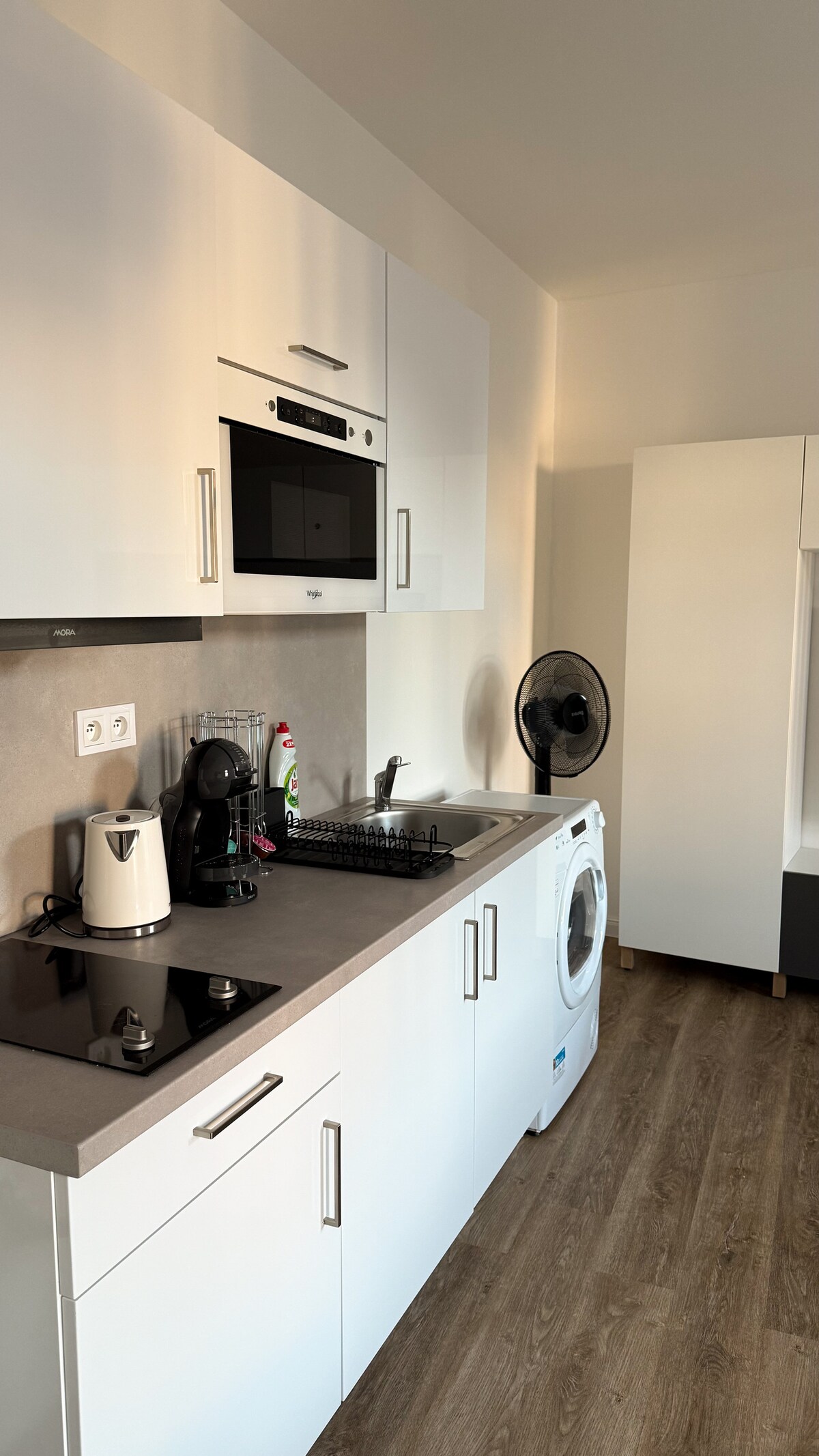 Klusa, komfortabla dizaina studija modernā ēkā ar iekštelpu autostāvvietu tikai 10 minūšu attālumā no vēsturiskā centra. Studija piedāvā nelielu guļamistabu diviem, dzīvojamo un ēdamistabas zonu, labi aprīkotu virtuvi, vannas istabu un balkonu. Izbaudiet Nespresso mašīnu, iMac un Wifi. Dzīvojamās istabas dīvānu var izmantot trešās personas.