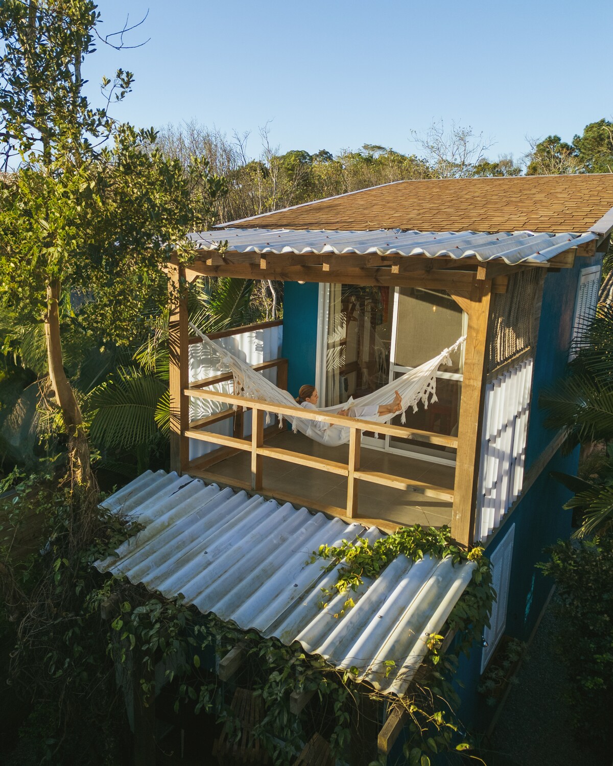 Kalnu namiņš augstu kalnā netālu no jūras un ar skatu uz kalniem un kāpām, kas nodrošina dienas noslēgumu ar brīnišķīgo saulrietu,piekļuvi mīlestības pludmalei un ūdenim pa takām . Ļoti jauka un droša vide ar gaisa kondicionētāju un Wi-Fi. mēs atrodamies Imbitubā ribanceiras pludmalē 5 minūšu attālumā no Ibiraquera bāra 10 min pilsētas pludmale 20 minūšu attālumā no Praia do Rosa tas nozīmē, ka izmantojat automašīnu.