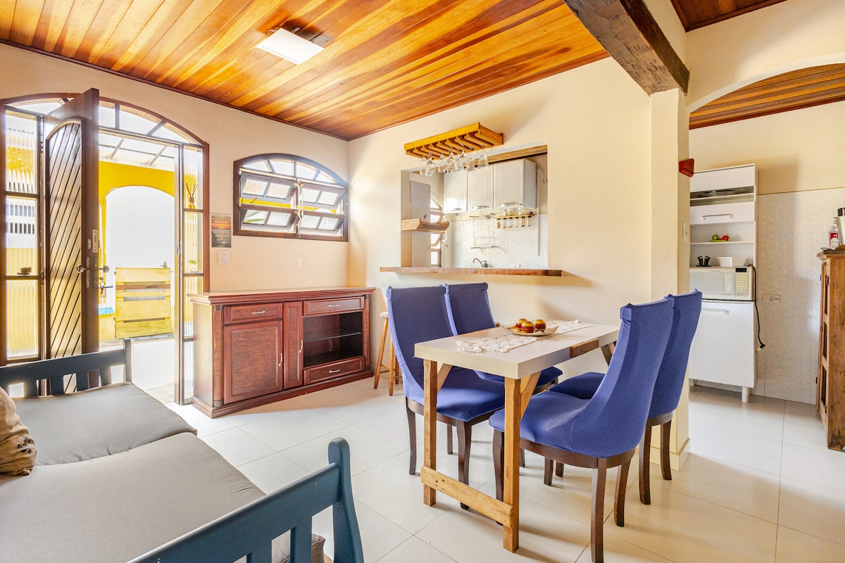 Kit super charmosa e muito bem localizada próximo (400 m) da praia do Itaquanduba e Itaguassu. Próximo a vários restaurantes, mercado e ao centro comercial (pereque) Acomoda até 3 pessoas, sendo um quarto com cama de casal tamanho queen e uma sala com cama e bicama. Tv smart Tem estacionamento em vaga descoberta e mercadinho na porta de casa. Local estratégico!