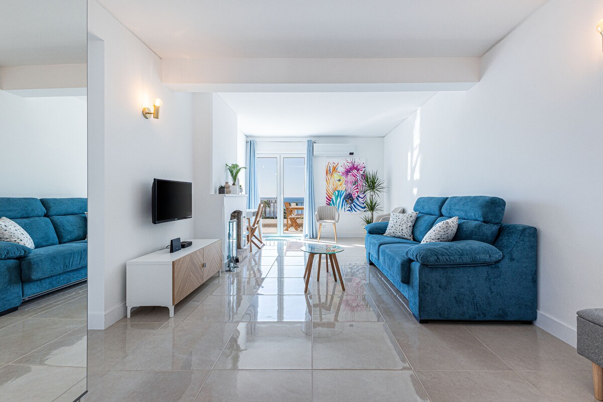Appartement avec une chambre et une incroyable vue mer à 150m de la plage. L'appartement se compose d'une chambre, de 2 salles de bains, une cuisine entièrement équipée ouverte sur un grand séjour/salle à manger. L'appartement dispose d'une sublime terrasse avec une superbe vue sur la mer. A 150m seulement se trouve la magnifique plage «dos alemões» Vous êtes à 10 mn à pied de la vielle ville.