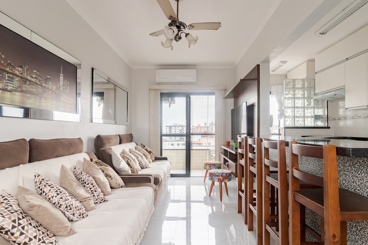 IZĪRĒ DZĪVOKLI AVIAÇÃO APKAIMĒ, PRAIA GRANDE ✔Ēkas priekšējā jūras loga loga skats uz jūru ✔1 kopmītne ar ietilpību 5 cilvēkiem ✔Virtuve aprīkota ar ledusskapi, plīti, mikroviļņu krāsni un piederumiem Priviliģēta atrašanās vieta ar kioskiem, vīna darītavām, .lanchonete, picēriju, restorānu un saldējumu 6. stāva✔ dzīvoklis ar 3 liftiem un diennakts konsjeržu Ģimenes ✔dzīvoklis, nepieņem grupas . Mums ir Wi-Fi un viedtelevīzija