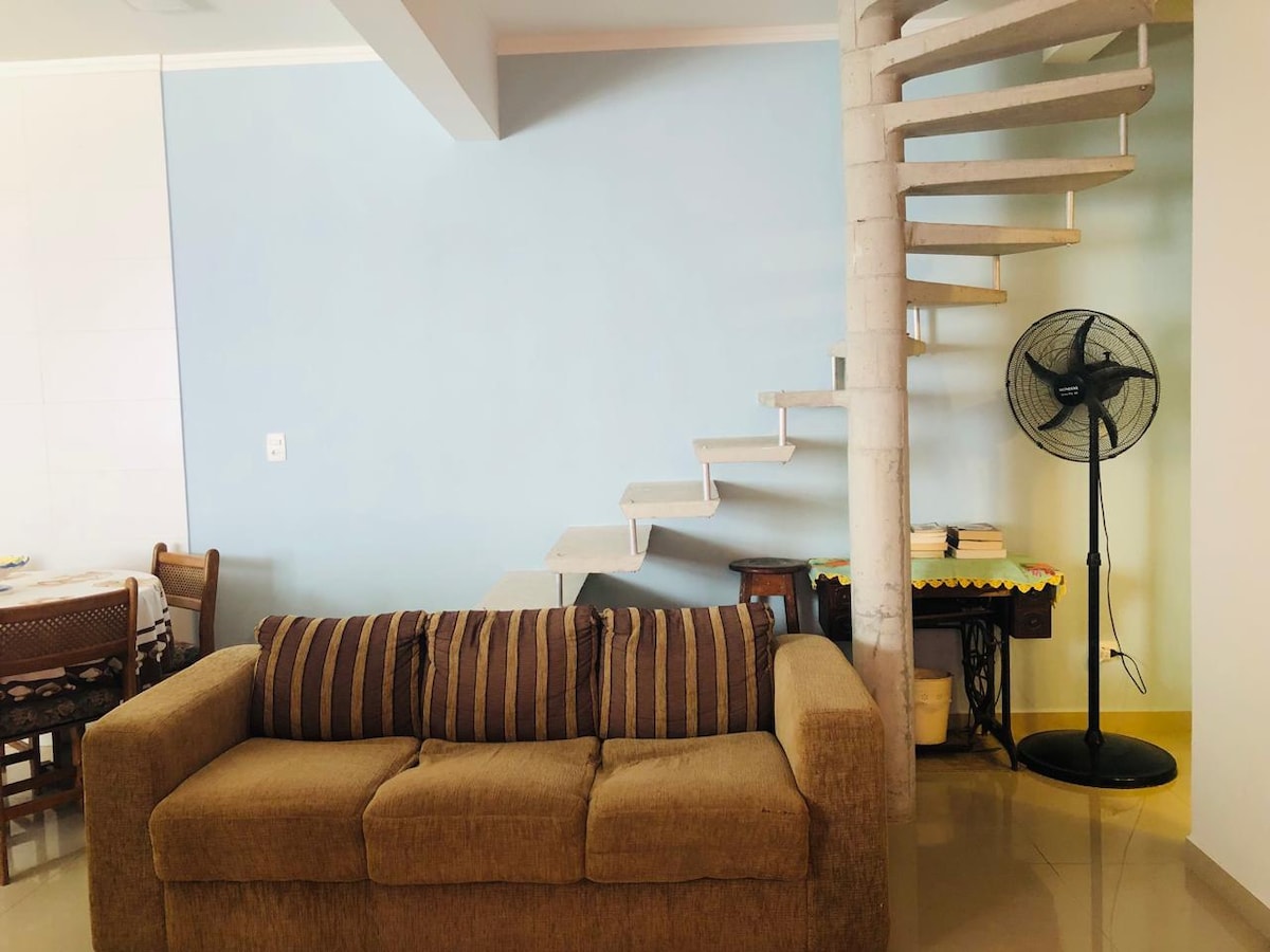 A 180 m (2 quadras) da praia Martim de Sá este loft fica em mini pousada com 4 suítes. A unidade acomoda até 4 pessoas (tarifas acrecem a partir do 2º hóspede), c/ quarto e banheiro privativo, cozinha privativa c/ utensílios básicos (pia, fogão, microondas e geladeira). Vaga interna descoberta para 1 carro. Boa infra de bares, restaurantes, quiosques e mercado. Faça tudo a pé. 1 Pet de pequeno porte é aceito e tarifado. Voltagem 220v. Tomadas 10A não suportam airfryers, fritadeiras, etc.