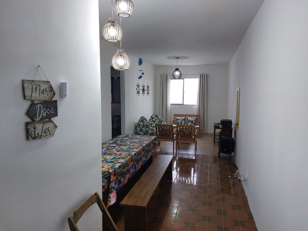 Apartamento inteiro para você, a poucos passos da praia! 🌴 Aconchegante,lindo e alegre!😍 Cozinha Completa,com todos utensílio doméstico como panela arfry,panela de arroz,panela de pressão,sanduicheira, copos,taças. 🍴 Quarto com cama de casal ,cama de solteiro com ar condicionado sprinter,ventiladores Temos roupas de cama e banho,Secador de cabelo,prancha,ferro de passar. Também há estacionamento no prédio individual. O condomínio oferece mercado e OMO Porta com fechadura digital .😀