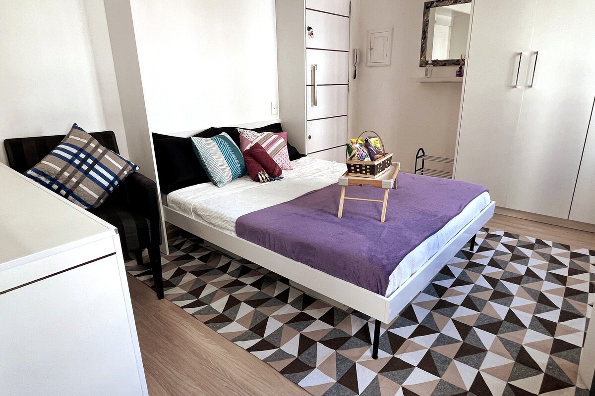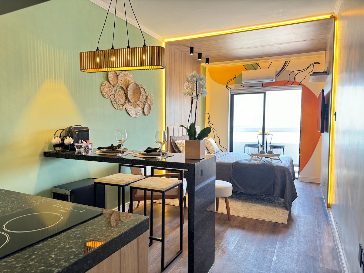 Studija ar skatu uz jūru/balkonu/Enxoval/Wi-Fi