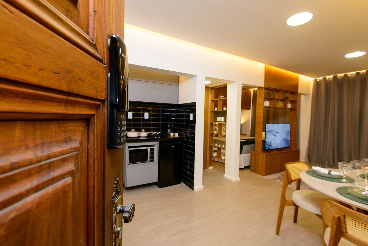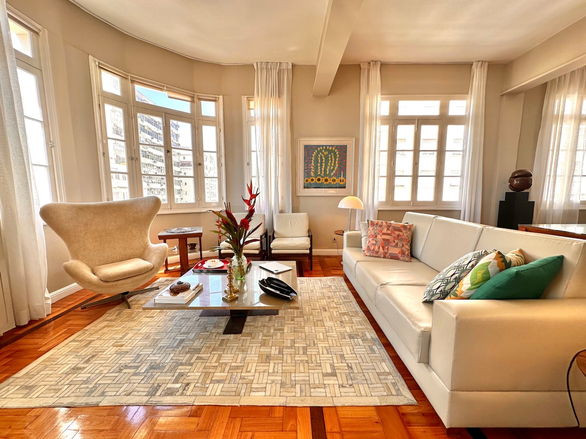 Boho šika stila dzīvoklis Kopakabanas pludmalē! - Divguļamā gulta, dīvāngulta, ēdamgalds, gaisa kondicionētājs un telpa mājas birojam (Wi-Fi 300 Mb/s). Virtuve ar plīti, ledusskapi, cepeškrāsni, mikroviļņu krāsni, blenderi, kafijas automātu, sulu spiedi, sviestmaižu automātu, pannām, virtuves piederumiem, dažādām grāmatām, ģitāru un televizoru ar aplikācijām. - Tirgus un aptieka zem ēkas, restorāni un veikali ap dzīvokli. - Lidosta 8,3 km attālumā - Cristo Redentor 11,5 km attālumā - Pão de Açúcar 2,8 km attālumā