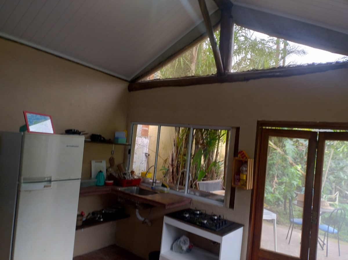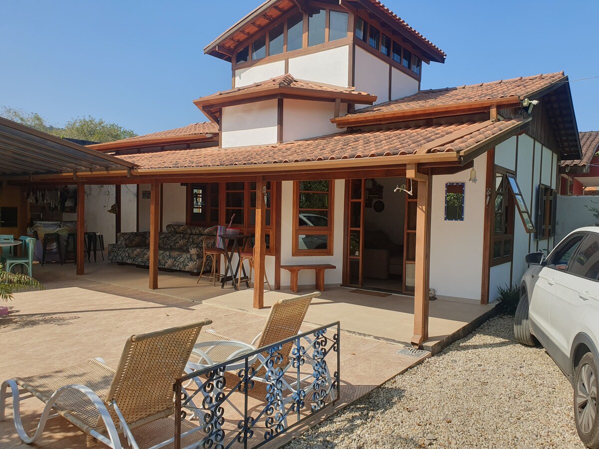 Ģimenes atmosfēra! Casinha ar 2 stāviem: - Pirmajā stāvā ir dzīvojamā istaba un pilnībā aprīkota amerikāņu stila virtuve ar plīti, minibāru, katliem, pannām, blenderi un mikroviļņu krāsni. - Otrajā stāvā ir kopmītne un vannasistaba. No guļamistabas loga paveras skats uz jūru un Martim de Sá pludmali. Wi-Fi, Smart-TV, gaisa kondicionētājs, garāža. Penthausa telpa ar dīvāniem mājas priekšā. Gardēžu telpa ar grilu, malkas krāsni un picu. Baseina terase un kalnu platforma.