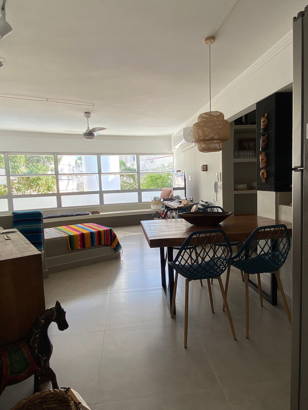 Dzīvoklis ir mājīgs un moderns, virtuve integrēta ar viesistabu, plašs balkons ar skatu uz Fortes kalnu, Tombo pludmali un Guaiuba, kā arī nodrošina brīnišķīgu saulrietu!!!! Tajā ir 1 privāta guļamistaba un viesistabā iebūvēta divguļamā gulta, kas pārveidojas par citu guļamistabu (aizverama ar aizkariem)