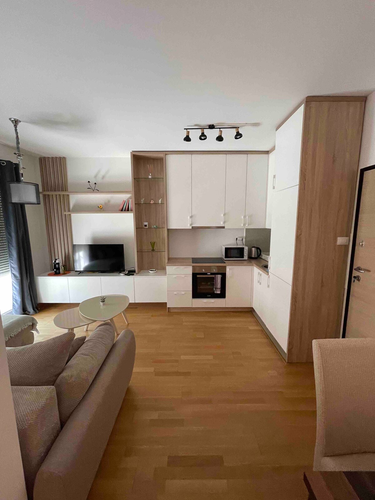 Šis ir jauks dzīvoklis nelielā dzīvojamā ēkā. Tajā ir 2 terases, no kurām viena ir ar jauku skatu uz publisko dārzu. Apkaime ir klusa, ideāli piemērota ģimenēm. Autostāvvieta nav privāta, tā ir publiska un bezmaksas. Dzīvoklis atrodas netālu no autoostas, 10 minūšu gājiena attālumā no krasta, 15-20 minūšu gājiena attālumā no vecpilsētas. Wi-Fi ir lieliski piemērots digitālajiem klejotājiem un videozvaniem, 90 Mbps lejupielādei, 5mbps augšupielādei, televizoram vairāk nekā 150 kanāliem. Blakus atrodas daudz mini tirgu un lielveikalu.
