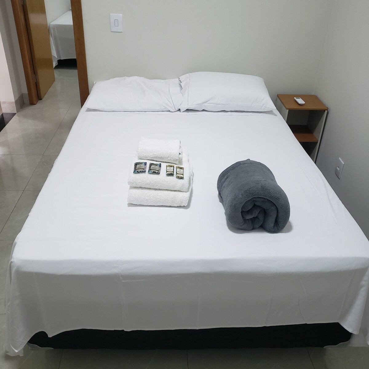 Estamos bem localizado, apartamento completo Suite com cama Queen Sala contém um sofá cama , Tv, ar condicionado Cozinha completa para fazer suas refeições Ambiente bem reservado de alto Padrão . ⛔️Proibido a entrada de animais de estimação Esqueça de suas preocupações neste lugar espaçoso e tranquilo.