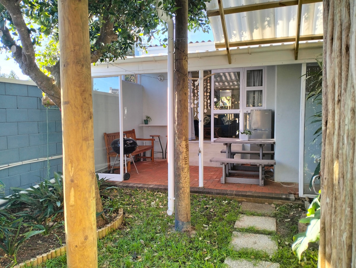 A neat comfortable flat in a peaceful neighbourhood, a 500m walk away from the Onrus to Sandbaai coastal path. Great locations for swimming, surfing, diving or just catching some sun rays. If you like mountain biking or hiking the mountains are also just around the corner. The stoep features a wood fired hot tub and fire pit and looks towards the mountains and a stand of bluegums which attracts a lot of bird life. The flat is on our property but is completely separate with secure parking.