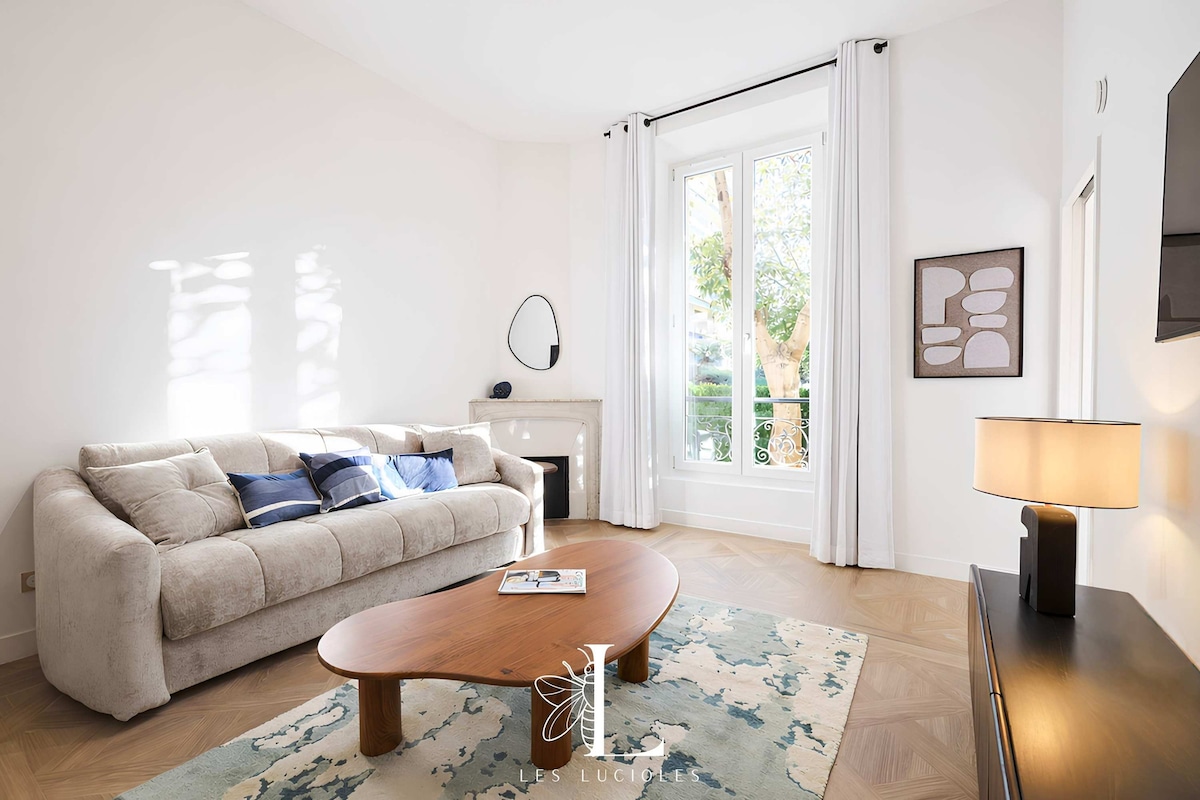 Ideally located between the Croisette and Rue d'Antibes, you're just 20m from the beach and 3 minutes' walk from the festival. You'll be right in the center of the lively “Carré d'Or” nightlife on Rue Commandant Andre! The apartment is located on the second floor of a classic building with elevator, and has been recently renovated. It has a double bed and a sofa bed, and a small, well-equipped kitchen. Ideal location for vacations or conferences!