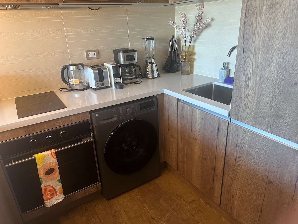 Jauns dzīvoklis, kas atrodas vienā no ekskluzīvākajiem rajoniem Metropolitēna reģionā. Soļi no Parque Araucano, kas ir viena no galvenajām Las Condes zaļajām zonām, Nueva Las Condes finanšu sektorā, kā arī Mall Parque Arauco, Open tirdzniecības centra, bankām, lielveikaliem, pārtikas terasēm un Vācijas klīnikas. Dzīvoklis ir aprīkots ar visu, kas nepieciešams lieliskai atpūtai. Tajā ir "king" izmēra gulta, dīvāngulta, divguļamie aizkari, 55collu televizors, Nespresso kafijas automāts, trauku mazgājamā mašīna.