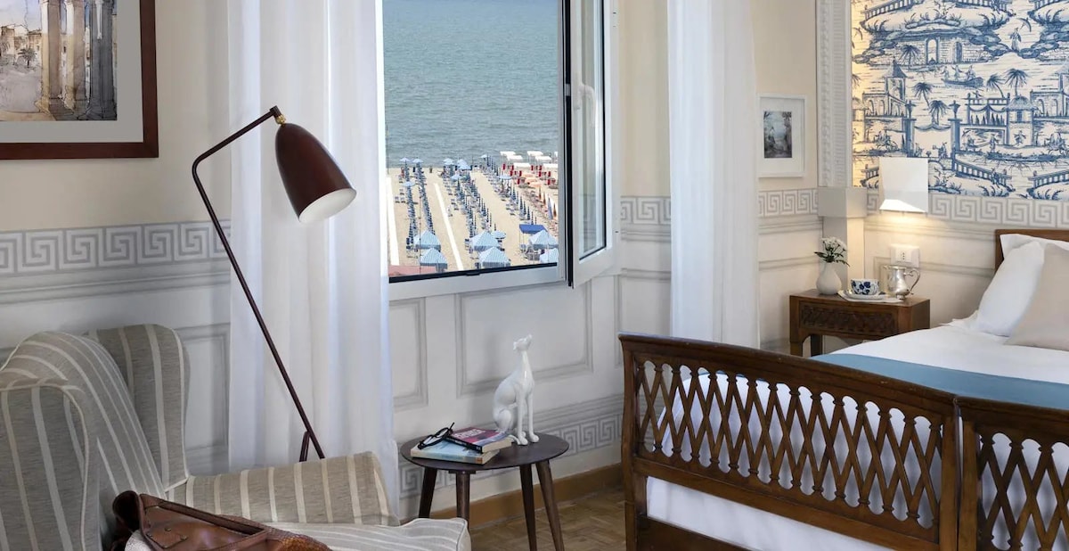 The elegantly designed rooms feature a full front sea view and include free WiFi, air conditioning, a TV with Sky channels, a minibar, and a well-equipped bathroom with a hairdryer and premium toiletries. Nestled along Viareggio’s scenic seafront, Palace Hotel offers a luxurious stay with a rooftop terrace showcasing breathtaking panoramic views of the Tyrrhenian Sea and Apuan Alps. Beach facilities are available at an extra charge, beach club La Pace, just in front of the hotel.