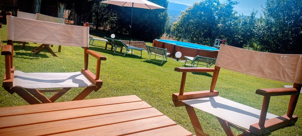 Neatkarīgā lauku māja 150 kvadrātmetru platībā ar dārzu aptuveni 5000 kvadrātmetru platībā ir iegremdēta Sabinas pakalnu zaļajā daļā. Atrašanās vieta ir klusa un panorāmas, un tā ir ideāli piemērota, lai sasniegtu viduslaiku ciematus Lazio un Umbrijā. Mājā ir divi āra grili un divi kamīni. Augļu dārzs ar aptuveni 50 augļaugiem, kur var izvēlēties sezonas augļus. Noliktavā ir Wi-Fi un apkures sistēma, 3 viedie televizori un veļas mašīna