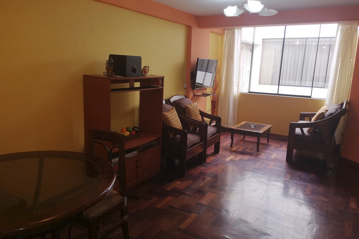 Laipni lūdzam mūsu mājīgajā patvērumā! Šis dzīvoklis piedāvā privātumu un grila zonu, kur baudīt dabu. Atrodas klusā un drošā vietā, tikai dažu minūšu attālumā no Miraflores. Lieliski piemērots pāriem, kas vēlas atpūsties un iepazīt pilsētu. Ar neatkarīgu ieeju un 1 stāvu, aprīkotu virtuvi un logu uz ārpusi, ērtu divvietīgu gultu, kabeļtelevīziju, dušu ar karstu ūdeni, veļas mazgātavu ar markīzi un ātru Wi-Fi. Rezervējiet tūlīt un izbaudiet ideālu atpūtu!