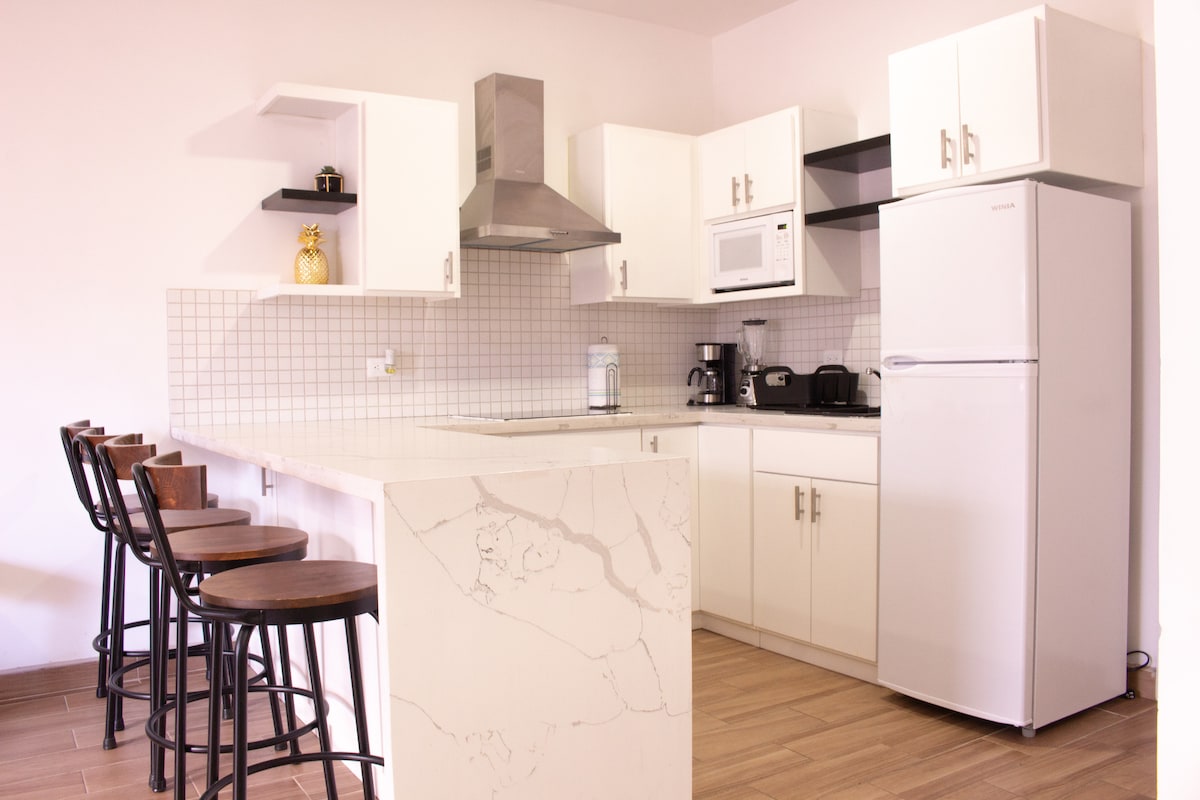 "Skaists dzīvoklis 5 min attālumā no dēļu celiņa, El Mirador pludmale, 2 kvartālu attālumā no Benito Juárez galvenā bulvāra un 1 kvartāla attālumā no Fremontas bulvāra netālu no lielveikaliem, seifs, Wi-Fi, kabeļtelevīzija, privāta autostāvvieta vienai automašīnai, aprīkota virtuve. Mēs īstenojam visaugstākos tīrības un higiēnas standartus jūsu drošībai un komfortam.