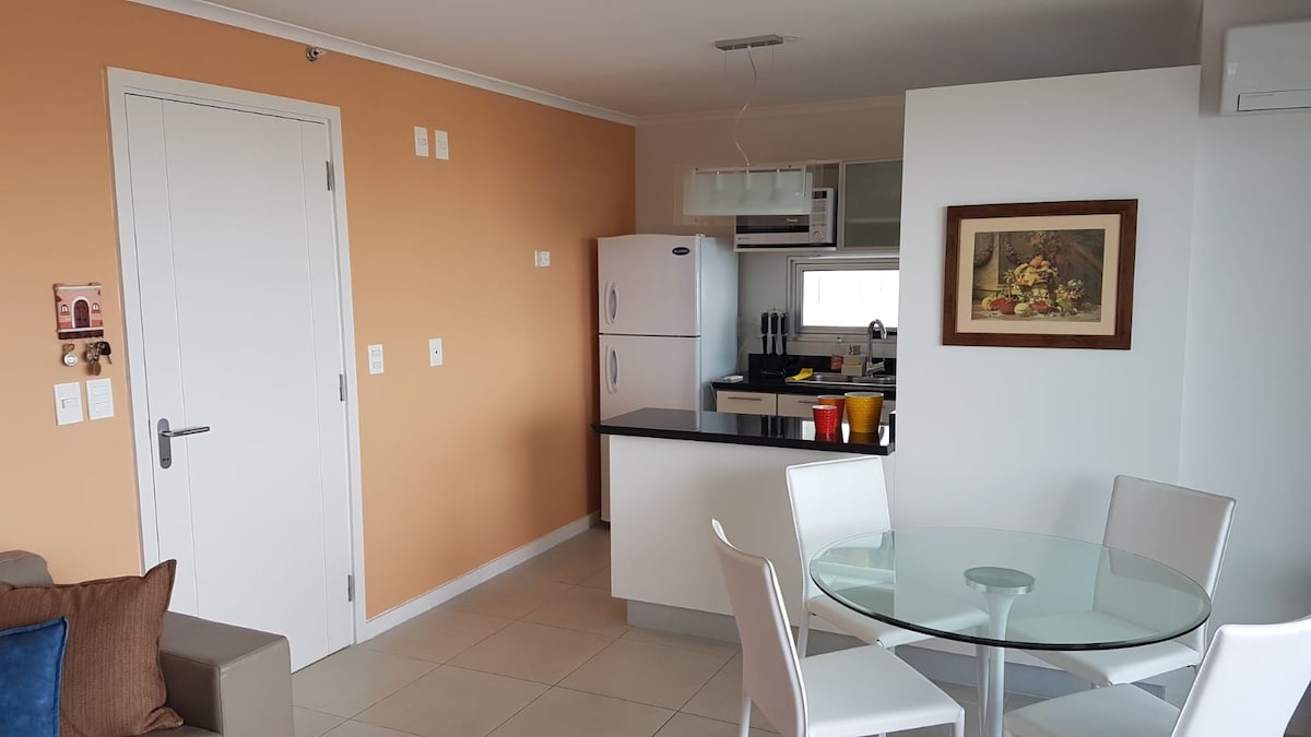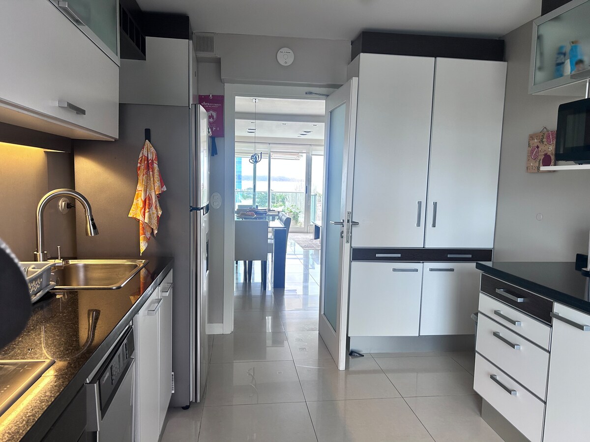 Atpūtieties šajā klusajā un elegantajā mājoklī. Izbaudiet unikālu skatu uz Punta del Este. Tajā ir viena guļamistaba (atvērta), viena vannasistaba, aprīkota virtuve, gaisa kondicionētājs, Wi-Fi, Smart TV utt. sommier 2 seazas un 2 matrači 1 kvadrāts. Labākās ērtības, tostarp atklāts un slēgts baseins, grils, garāža, mikrokinoteātris, sporta zāle, āra spēles bērniem, istabas (bērniem, pusaudžiem un pieaugušajiem). Konsultējieties ar mani.