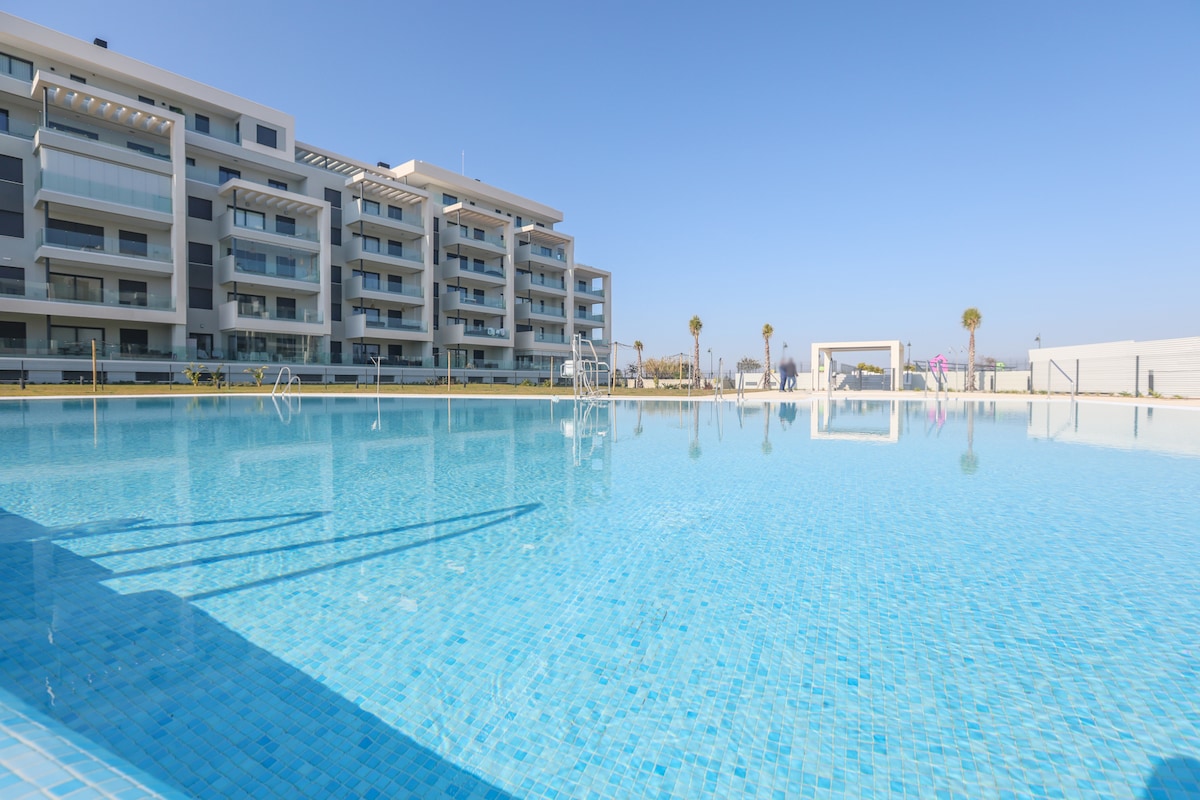 Do you want to relax with your friends and family? This apartment is great to share unique moments with your beloved. With 2 swimming pools (one for adults and one for kids), a kids playground, 2 paddle courts and a barbeque, the apartment offers all the comfort you need. Situated in the southern- Spanish border with Portugal, the apartement is 40 min by car from Faro Airport and 1.2h from Sevilla Airport. Kindly note swimming pools are closed from October to April. Opening times might vary.