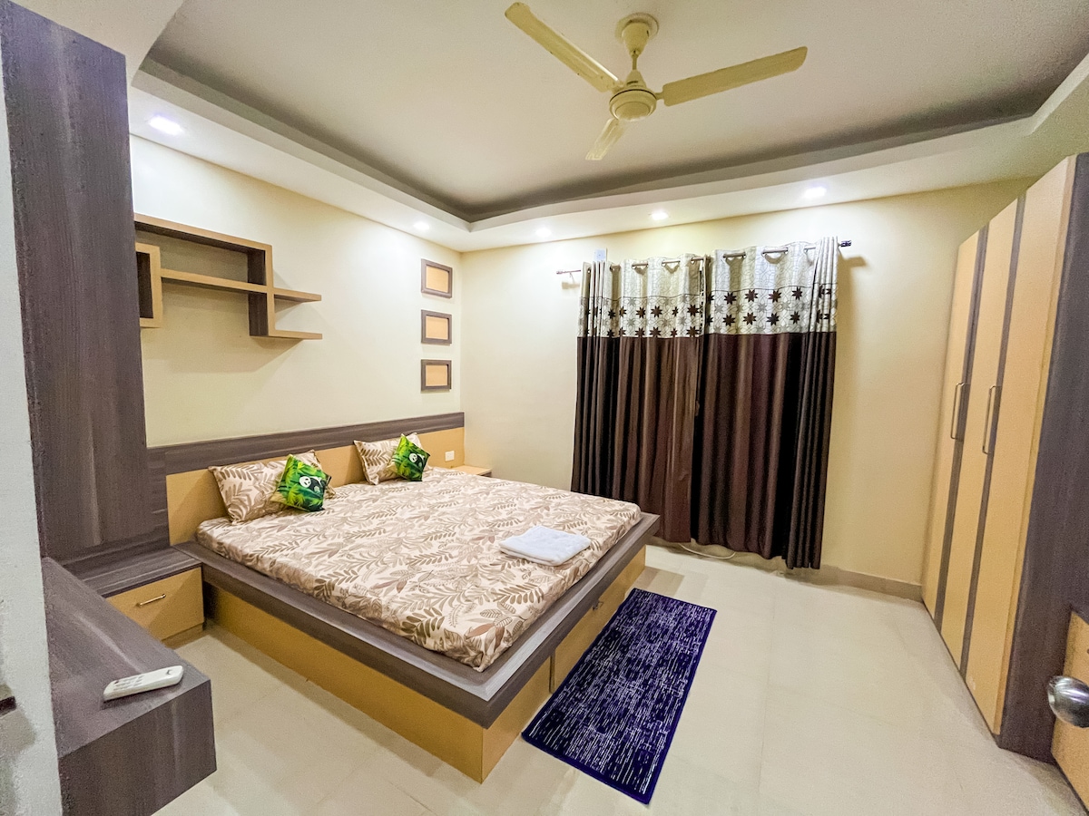 Welcome to our elegant 2 BHK apartment, perfect for family stays! Enjoy two comfortable IKEA king beds and a queen-size sofa bed in fully air-conditioned rooms, including a spacious living room. The open, pure vegetarian kitchen is fully equipped for your needs. We’re just a 600m away Blue Flag beach and 1.5 km from Sri Jagannath Temple, offering ideal privacy and comfort for long stays. Located on wide, well-maintained roads, Experience the perfect blend of relaxation and convenience!