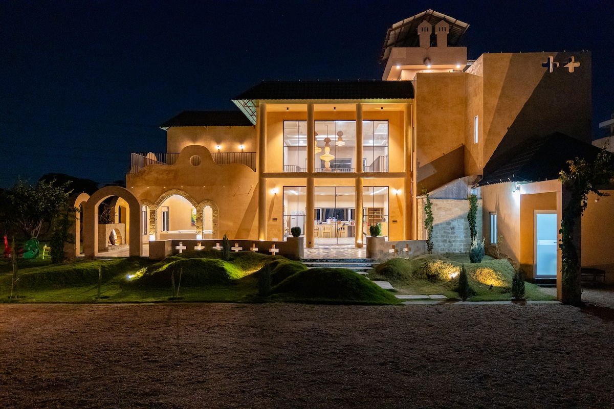 Set amidst peaceful hills near Pushkar Lake and Brahma Temple, this private 5-BHK pet-friendly villa blends rustic elegance with modern comfort. A sprawling lawn sets the scene for bonfires and sunset lounging, while the entertainment lounge promises lively evenings. Enjoy chef-curated meals, unwind in your private pool, and relax in warm, thoughtfully designed bedrooms overlooking serene green views, perfect for memorable escapes and celebrations.