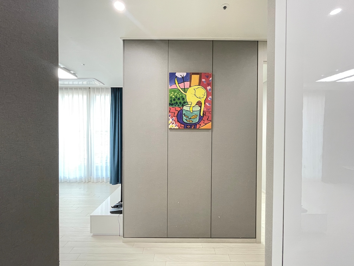 Sveiki, "Sveiki, Hansom." Sveiki, Hansum ir mājoklis, kur mīļotāji un ģimenes, kas ceļo kopā, var ērti un patīkami pavadīt laiku Austrumjūrā. Hansum Beach atrodas 5 minūšu gājiena attālumā, un jūs varat sēdēt pie viesistabas galda un baudīt skatu uz okeānu, un tā ir īpaša telpa, kur jūs varat baudīt savu uzturēšanos, skatoties Netflix ar siju projektoru un 100 collu ekrānu, kas uzstādīts guļamistabā. Šī ir naktsmītne ar skatu uz okeānu, kas sastāv no➰ 1 guļamistabas, viesistabas, virtuves un 1 vannasistabas. ➰ Guļamistabā ir divguļamā gulta un viesistabas dīvāngulta, kas var uzņemt līdz 4 personām. ➰ Guļamistabā var skatīties Netflix ar staru projektoru un 100 collu ekrānu. Viesistabā ➰ ir mufeng gaisa kondicionētājs un pa vienam katrā guļamistabā. ➰ Virtuvē ir iebūvēts ledusskapis, elektriskā plīts, mikroviļņu krāsns, spiediena katls un kafijas katls ēdiena gatavošanai. Mazgājama arī iebūvēta bungu➰ veļas mazgājamā mašīna. Ir pieejama➰ ķermeņa duša, šampūns, kondicionieris, putu tīrīšana un zobu pasta.(Zobu birstes un dušas dvieļi nav pieejami.) ➰ Mājdzīvnieki nav atļauti.