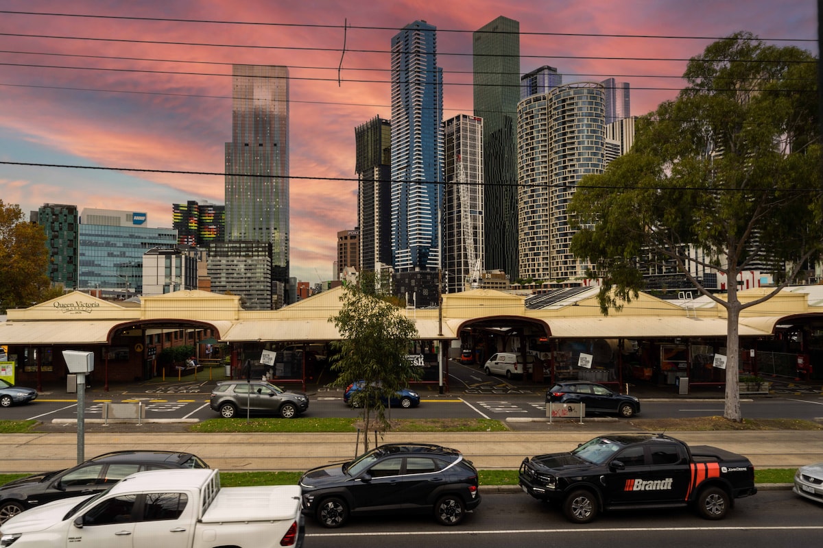 Skats uz saullēktu. 58F Melb CBD. 2BR. 6 PAX. Bezmaksas parks