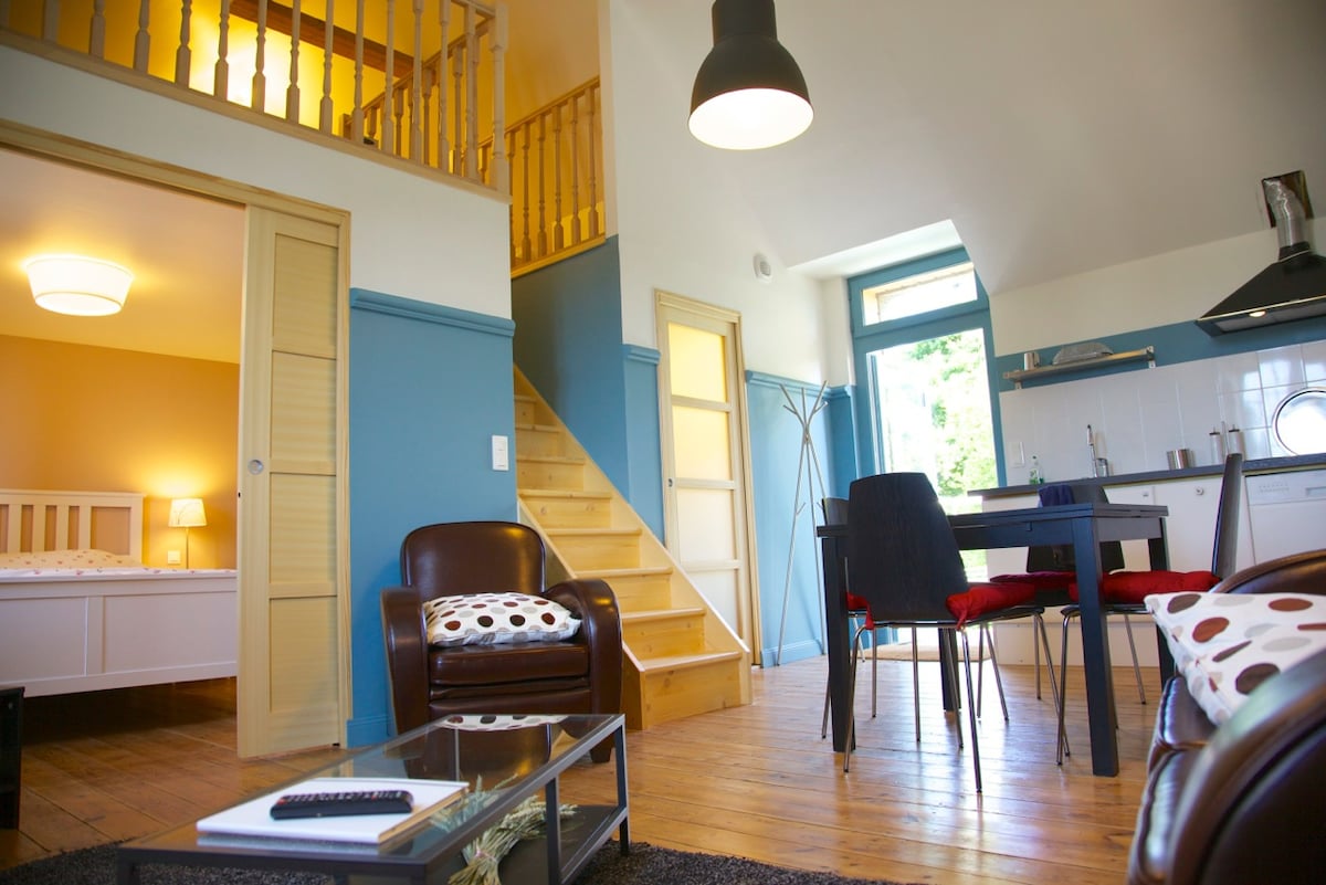 Neliela studija 20 m2 platībā ar 1 vannasistabu ar ieeju dušā un nelielu terasi. Ļoti klusa vieta 5 minūšu attālumā no pilsētas centra un tā veikaliem, neliela rakstura pilsētiņa ar amatniekiem un atjaunotām mazgātavām, skaistas ekskursijas ar laivām pa upi. Atjaunota un mēbelēta studija. Labas kvalitātes BZ gulta 2 personām un 1 mezonīna gulta, kurā var apmesties 2 pieaugušie. Mīļdzīvnieki nav atļauti. Pontrieux atrodas 20 minūšu attālumā no pludmalēm.