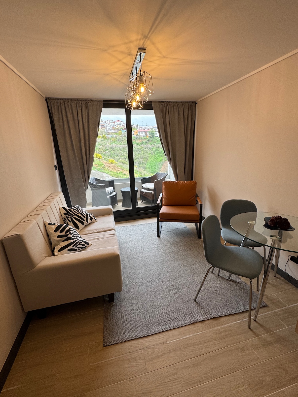 Laipni lūdzam savā patvērumā Viña del Mar. Mūsu siltais dzīvoklis sniedz patiesu pieredzi piekrastē. Izbaudiet elpu aizraujošus saullēktus un saulrietus ar skatu uz okeānu no guļamistabas vai balkona. Tikai 15 minūšu brauciena attālumā no pludmales, 5 minūšu attālumā no Jumbo/Easy. Tajā ir mājīga ēdamistaba, trīs ērtas gultas un daudzveidīgas atpūtas zonas - no baseina un viesistabas līdz spēļu istabai un kvinčos gardiem griliem. Šeit jūs gaida ideāla atpūta.