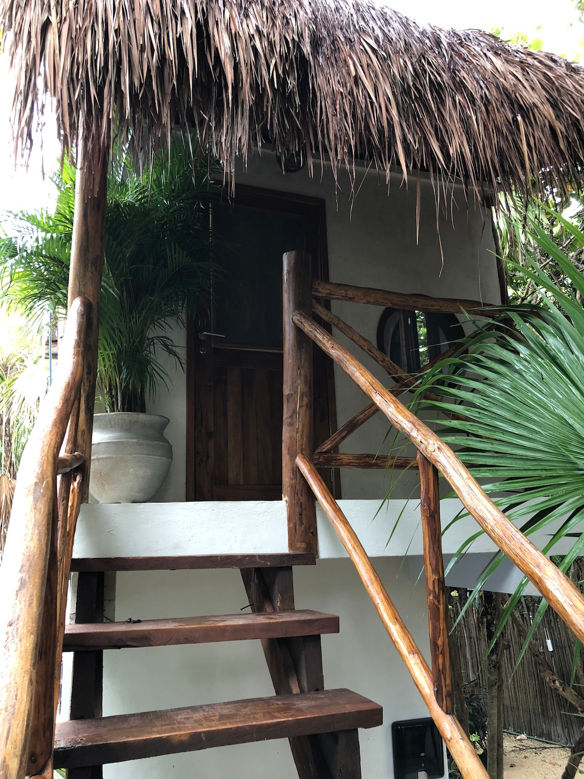 Šis skaistais koka namiņš ir ideāla vieta, kur atrast harmoniju ķermenim un prātam eksotiskā greznības vidē. Aprīkots ar A.C. un virtuvi ar mikroviļņu krāsni, blenderi un ledusskapi. Atsevišķa vannasistaba ar karstu ūdeni un dvieļiem. Daudz āra telpu ar šūpuļtīkliem un Palapu, kur baudīt skaistus dārzus un baseinu. Mēs atrodamies tikai 3 kvartālu attālumā no restorāniem un tūrisma aktivitātēm, labākajā dzīvojamajā rajonā un tikai 2 kvartālu attālumā no jūras.