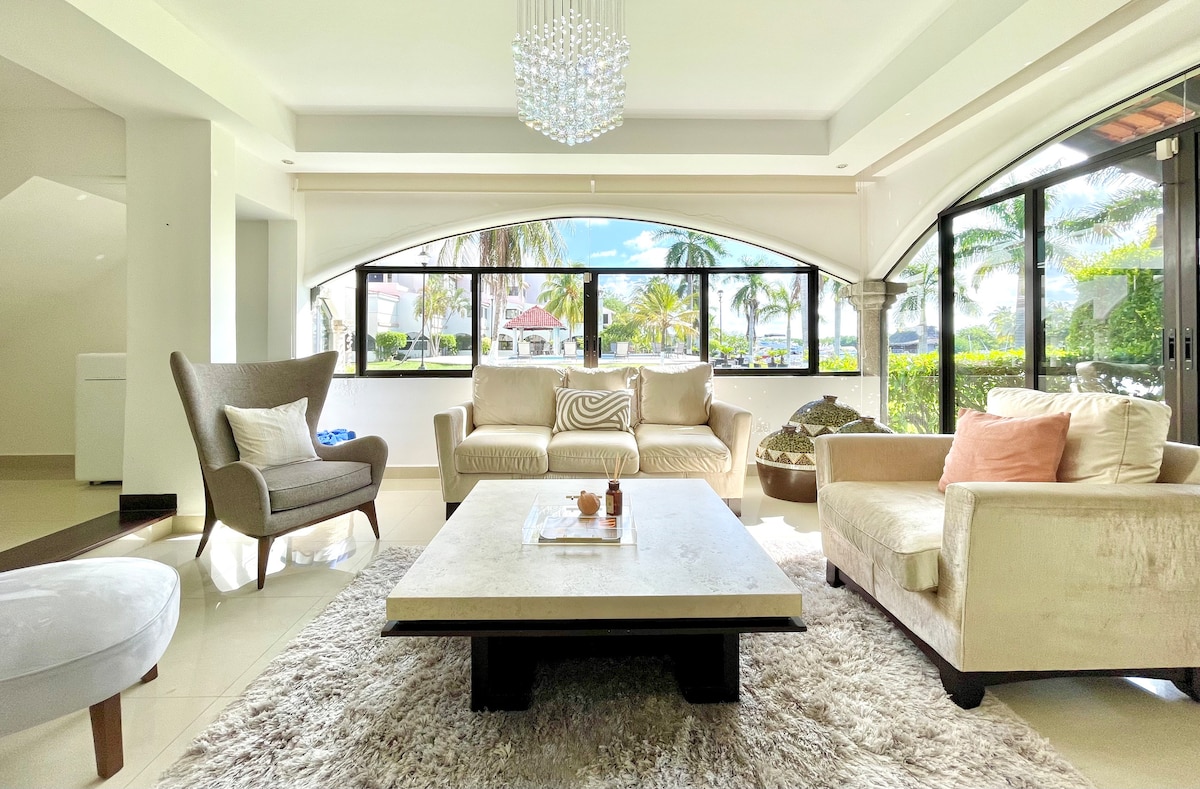* VILLA ATRODAS DZĪVOJAMĀ DAUDZDZĪVOKĻU NAMĀ. PIRMS REZERVĀCIJAS VEIKŠANAS, LŪDZU, RŪPĪGI IZLASIET NOTEIKUMUS: nelietojiet ballītes vai uzvedību, kas varētu radīt neērtības pārējos iedzīvotājus. Skaista villa ar diennakts drošību un privileģētu atrašanās vietu pašā viesnīcas zonas sirdī, Nichupté lagūnā un metru attālumā no jūras. Pilnībā aprīkots ģimenēm , 5 istabas, 5,5 vannasistabas, gaisa kondicionētājs, gaisa kondicionētājs, Wi-Fi un 2 autostāvvietas*