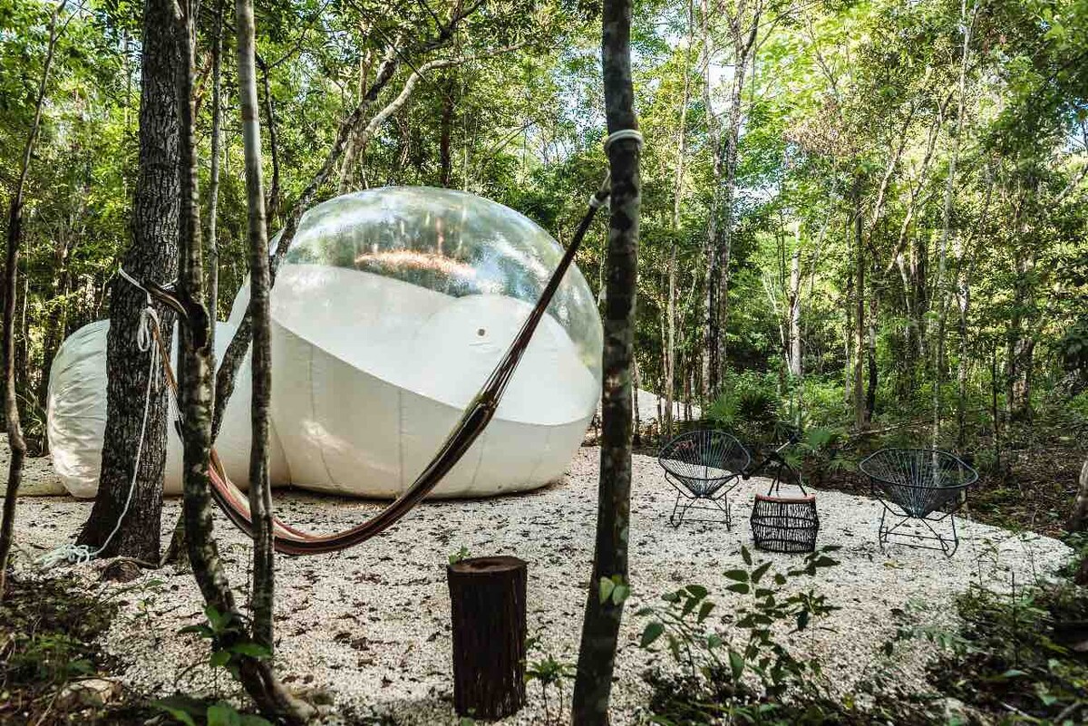 Nāciet un guliet zem sākumiem Maiju džungļos. Vai kādreiz esat aizdomājies par to, kā bija dzīvot burbulī? Nāciet un izbaudiet unikālo glempinga pieredzi! Nakšņojiet zem zvaigznēm piepūšamā burbuļu teltī un izmēģiniet kaut ko, ko vēl nekad neesat pieredzējis Maiju džungļos. Mājoklis atrodas slavenajā "La Ruta de los Cenotes", kur varat apmeklēt iespaidīgos izlietnes caurumus vai, ja vēlaties nolaisties līdz pludmalei, varat to sasniegt 15 minūšu laikā.